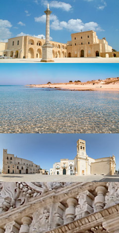 Si giunge dopo quarantacinque minuti di viaggio nella Firenze del Sud, l'Atene d'Italia, la fantastica Lecce, ricca di testimonianze Messapiche e Romane (col Teatro e l'Anfiteatro), e caratterizzata dal Barocco, con le bellissime chiese, dal Duomo a Santa Croce, a San Matteo, il Castello di Carlo V, le porte d'ingresso alla città ed i bastioni.